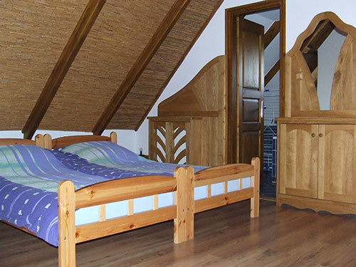One of the guest houses is on the vineyard-covered hill above the lakeside village, Lovas., it is lovely and genuine, furnished and equipped with objects of a local origin. We offer 6 non-smoking, double rooms including bathroom. An extra bed can be placed in each room. The mansion has a fully equipped kitchen, its own horse-pen, wine cellar, garden furniture, barbecue, and a rustic cockle stove. Our guests can wake up to the pleasant sight of a garden pond, the flower beds and the grazing horses. This accommodation is for maximum 12 persons.