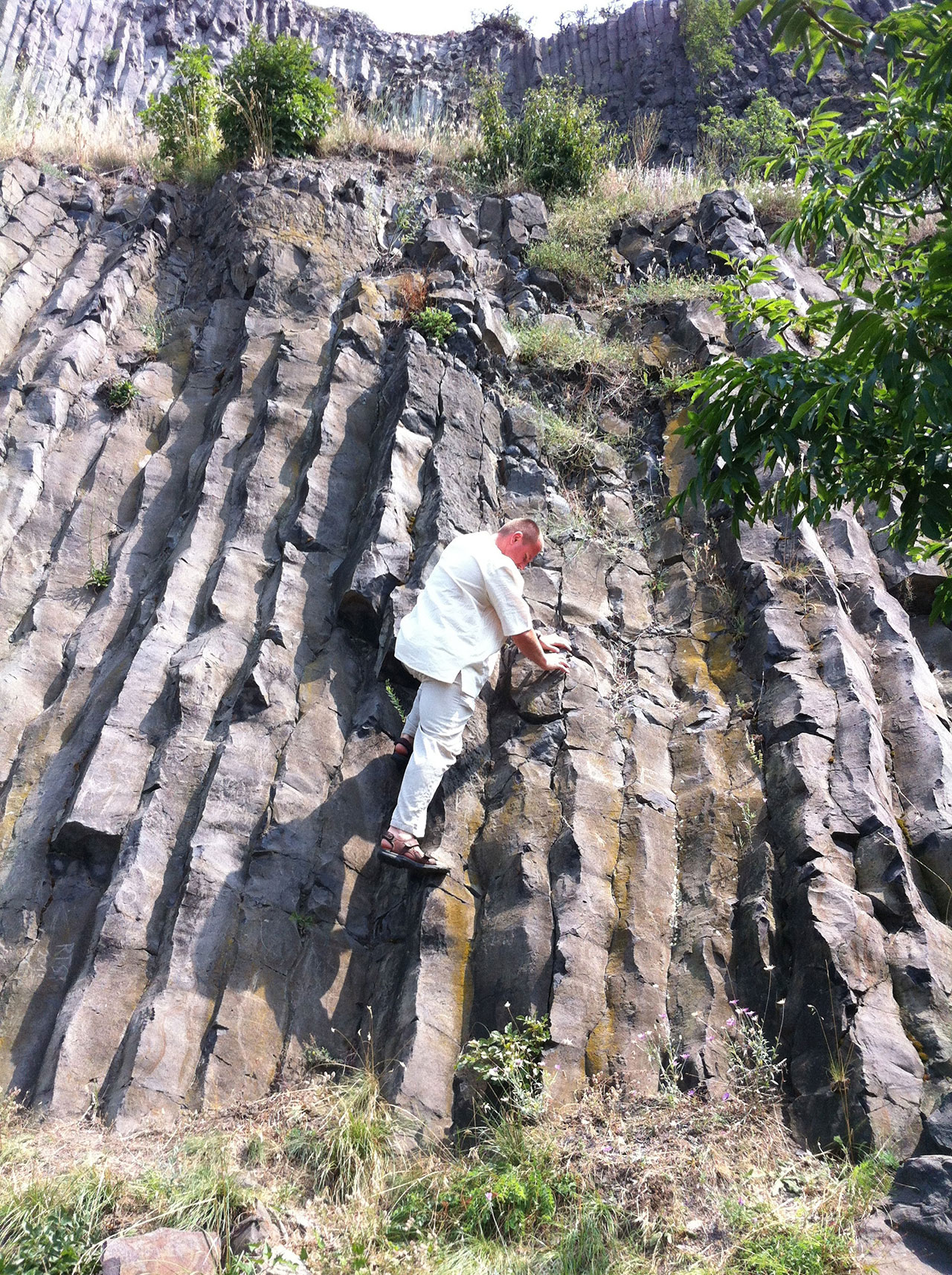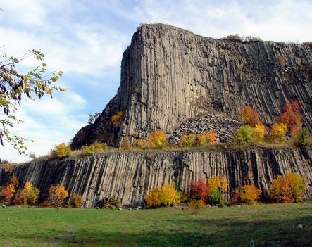 The stiff lava in the crater of the volcano during the stiffening process split up into several vertical polygonal columns, which are near 50 m high.