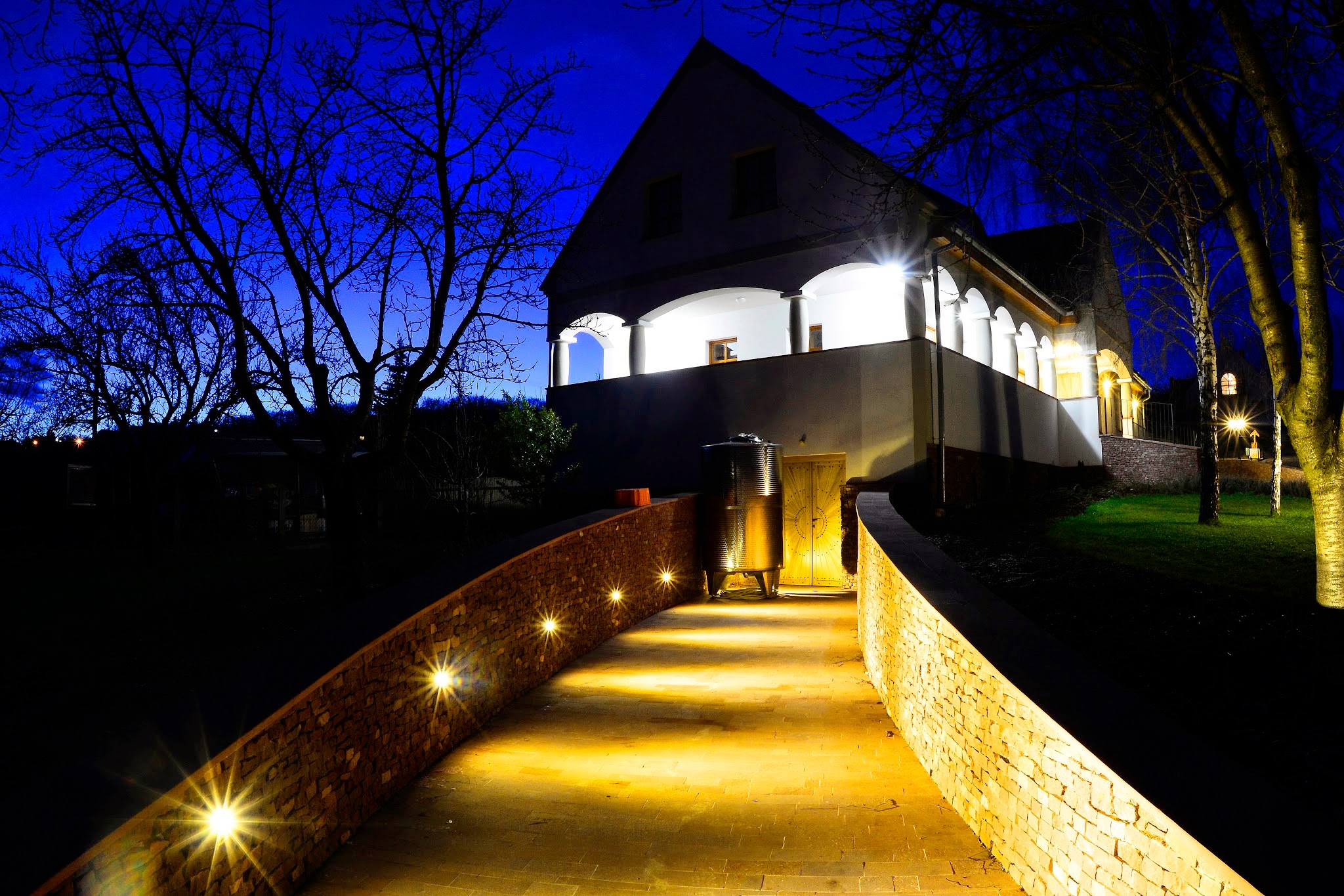 DetailsWinemaker Ernő Jakab believes in the power of music. Since he has read a book about vibrations written by a Japanese professor, Masaru Emoto PhD, he has been playing classical music for his fermenting wines. Day and night, classical music fills the cellar, having beneficial effect for the crystals in the fluids. His vineyard of a picturesque location offers a breath-taking view of the glimmering surface of Lake Balaton and Tihany Peninsula. Vine-stocks of olaszrizling (Riesling), juhfark (Sheep's tail), chardonnay and cabernet sauvignon grow here. His wines are made according to the traditional winemaking guidelines and methods. Four wines have won silver medals at the International Wine Competition of Vienna. A roasted dinner in a charming outdoor oven and lavender fields around the mansion provide even more unforgettable evening here.